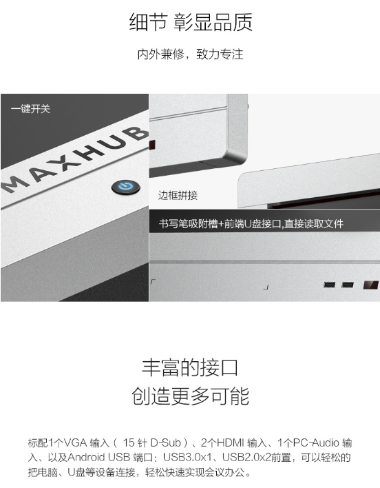 在這個(gè)多元而開(kāi)放的時(shí)代,MAXHUB 打破單一功能的產(chǎn)品邏輯,集高質(zhì)量顯示、觸摸書(shū)寫(xiě)、無(wú)線傳屏等